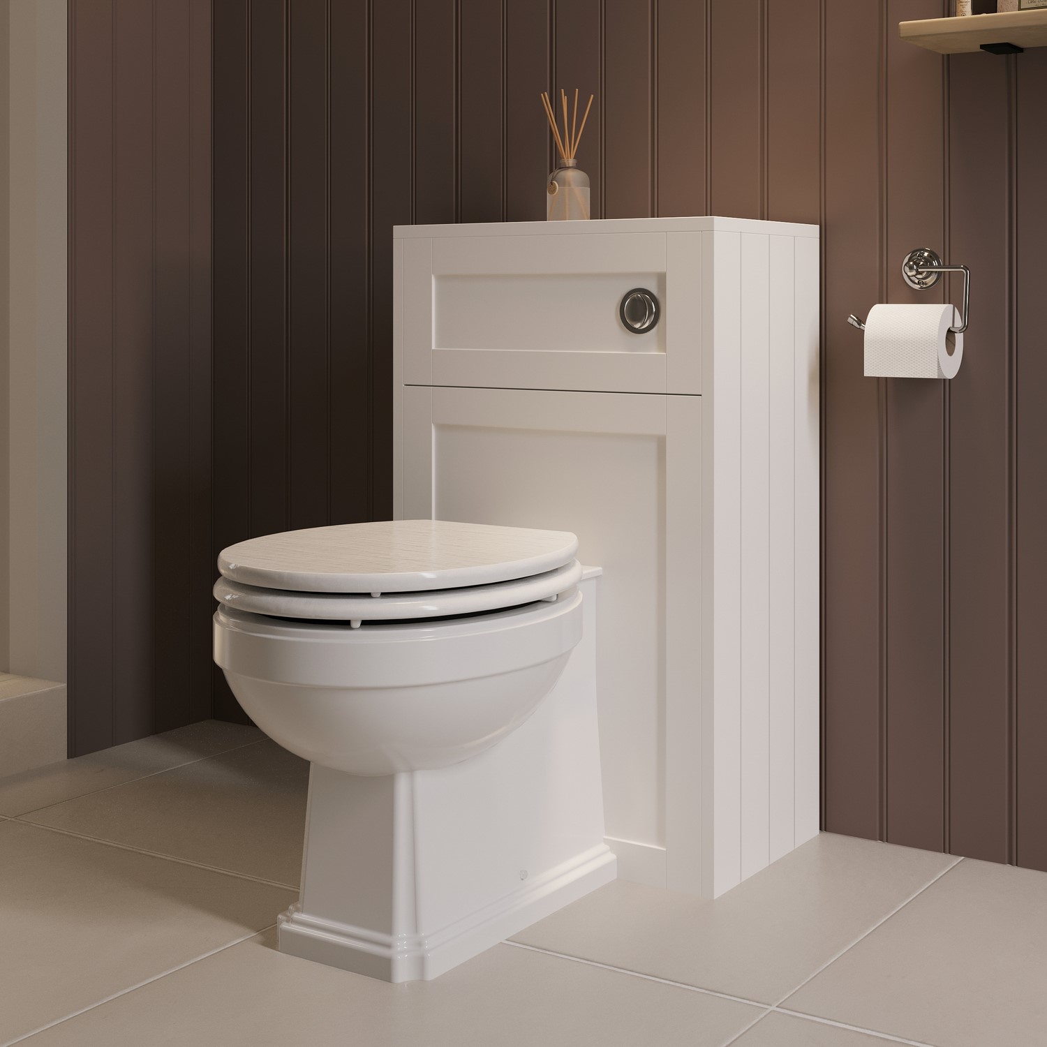 Transform your bathroom into a sophisticated space with this charming Baxenden back-to-wall toilet unit. The traditional styling features classic tongue-and-groove side panelling, as well as shaker detailing. Its white finish adds light as to not overwhelm smaller spaces, and is suitable for a range of push button finishes . The unit arrives ready-assembled, so you can focus on choosing the perfect back to wall toilet pan to complete your traditional bathroom styling.